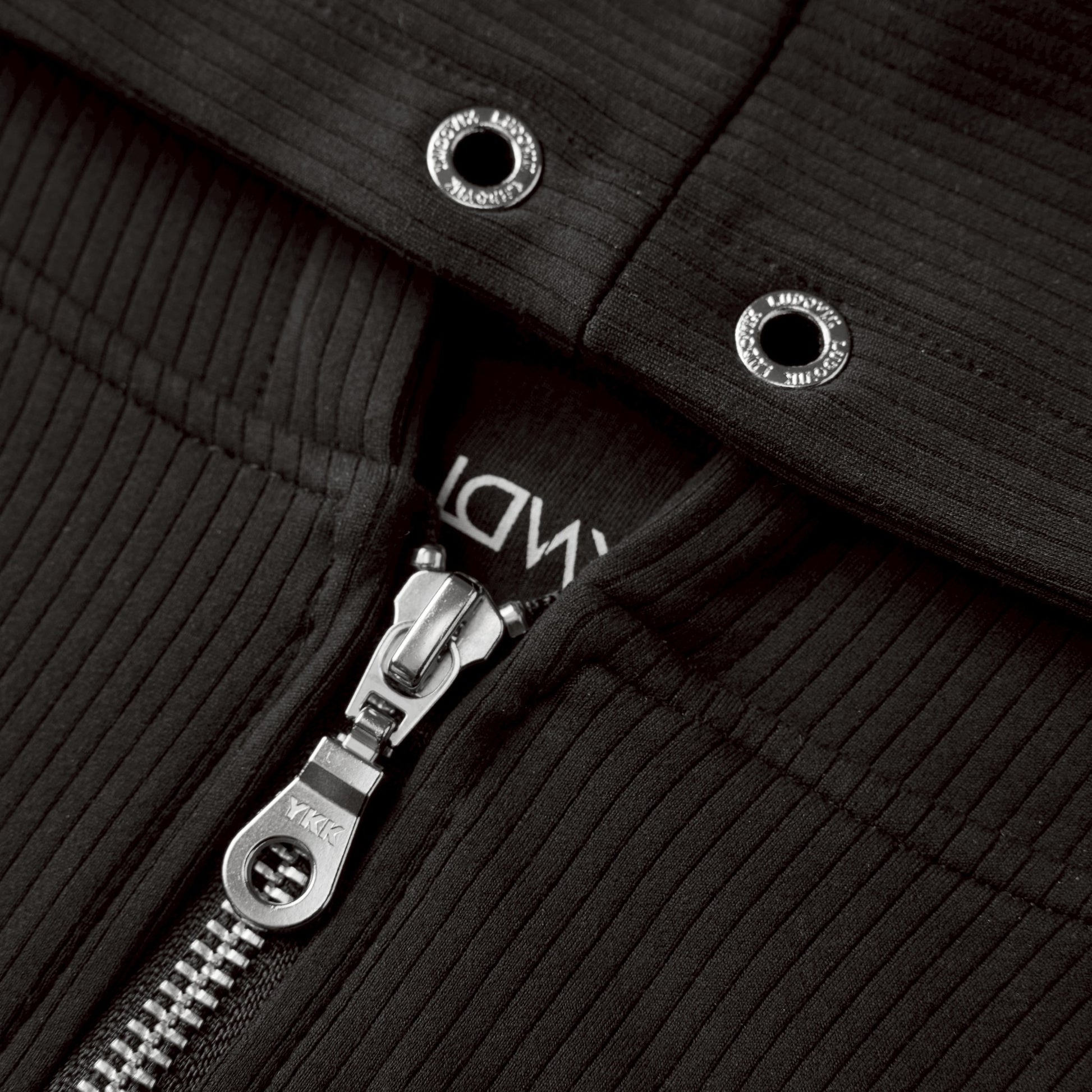 4.Hood detailed with the brand's signature eyelet design and embroidered logo accents.